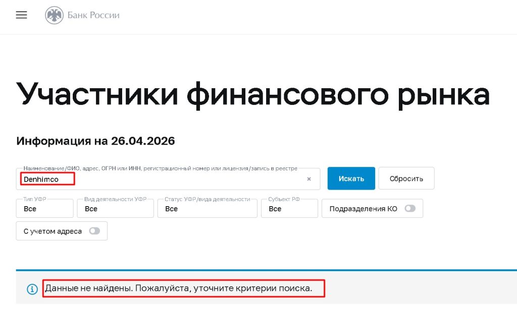 📢 Если у вас есть информация о действиях платформы Denhimco или вы попали в аналогичную ситуацию, сообщите через форму обратной связи: https://tvoybroker.com/proverka-kompanii-na-obman/.