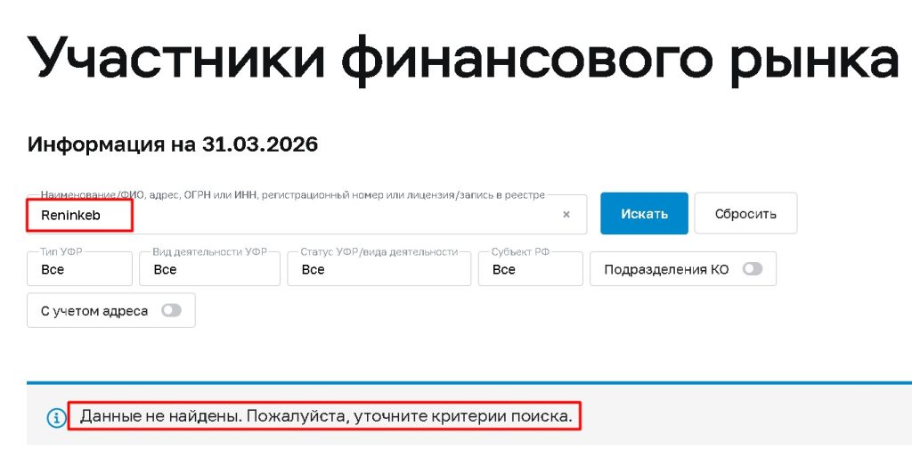 Проверка по официальным реестрам ключевых регуляторов дает ожидаемый результат: