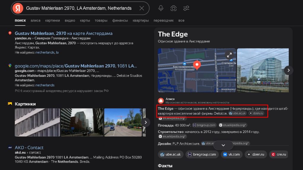 - Голландский фасад: Адрес Gustav Mahlerlaan 2970 в Амстердаме принадлежит бизнес-центру, где арендуются виртуальные офисы без физического присутствия компаний