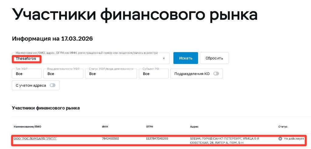 Проверка по официальным реестрам ключевых регуляторов дает однозначный результат: