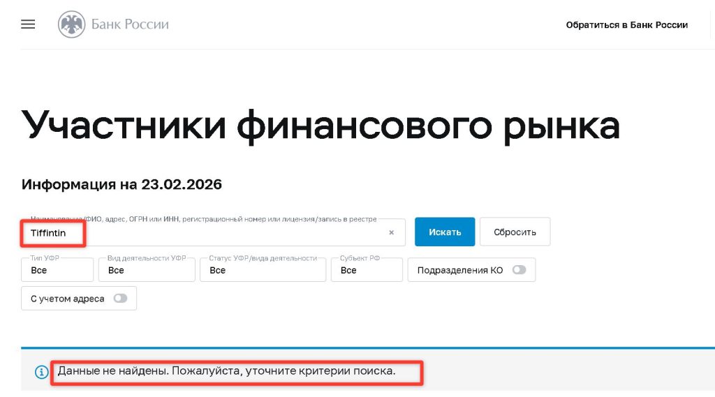 📢 Если у вас есть информация о действиях платформы Tiffintin или вы столкнулись с аналогичной проблемой, вы можете сообщить об этом для проверки и предупреждения других через специальную форму: https://tvoybroker.com/proverka-kompanii-na-obman/.