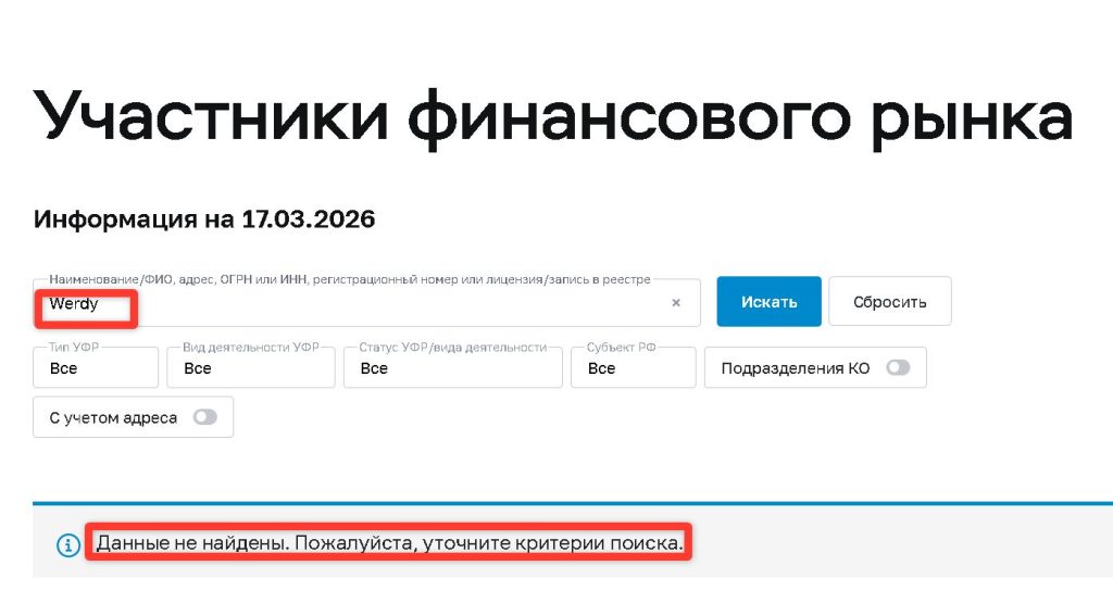 Проверка по официальным реестрам ключевых регуляторов дает однозначный результат: